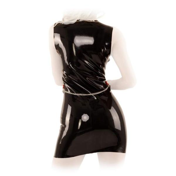 Anita Berg ziehen Sie alle Blicke auf sich. Das Kleid ist im Brustbereich ouvert gehalten und die silberglänzenden Zierketten rundum die Taille sind ein echter Hingucker. Zum bequemen An- und Ausziehen befindet sich in der Front ein durchgehender Reißverschluss, welcher in Kontrastfarbe optisch betont wird. Durch die Top-Qualität schmiegt sich das kurze Dress wie eine zweite Haut an Ihren Body und betont gekonnt Ihre scharfen Kurven. Das Mini-Kleid ist in absolut hochwertiger Latex-Qualität gefertigt und ein Must Have für jeden Latex Fan.