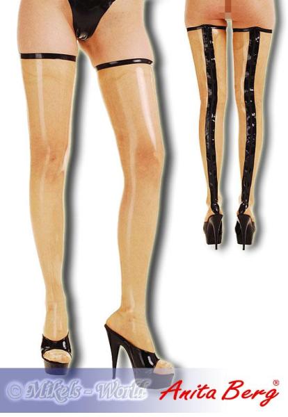 Anita Berg mit ausgeformtem Fuß reichen bis zum Oberschenkel und betonen gekonnt Ihre Weiblichkeit. Das besondere bei diesem Rubber Overknee-Strumpf sind die schwarzen oberen Abschlüsse und der schwarz unterlegte Reißverschluss auf der Rückseite. Sie sind der erotische Blickfang schlechthin und vervollständigen Ihr Latex-Outfit in Perfektion. Ein rasanter Hingucker in absolut hochwertiger Latex-Qualität. Ein Must Have für jeden Latex Fan.