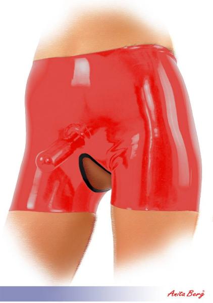 Anita Berg ist ein echter Blickfang! Die hautenge Latex Hose ist im Schritt komplett ouvert und mit Kontraststreifen farbig abgesetzt. In der Front ist ein ca. 11 cm langer und ca. 3,3 cm dicker Latex Dildo angebracht, welcher viel Spaß bei Rollenspielen bringt. Das sexy Latex-Outfit ist in absolut hochwertiger Latex-Qualität gefertigt und eignet sich ideal für einen heißen Fetisch-Event oder einen abwechslungsreichen Abend zu zweit. Ein Must Have für jeden Latex Fan.