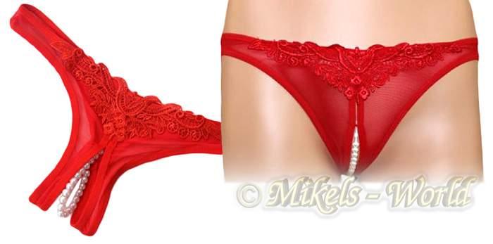 Dieser heiße Rio String mit roter, filigraner Spitze ist aufregend ouvert. Ein scharfes Extra ist das perlmuttfarbene Perlenband, welches durch den Schrittbereich verläuft und für besondere Reize sorgt. Mit dieser zarten Versuchung präsentieren Sie sich offenherzig und können jederzeit spontan sein.