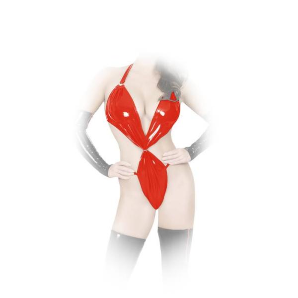 Insistline ist mit seinem heißen Styling ein rasanter Kurvenbetoner und besticht durch sein extravagantes Design. Mit schmalen Riemchen verdeckt der Body nur das nötigste und ist in der Front mit einem Ring zusammengefasst. Ein tiefer V-Auschnitt mit roter Kontrastpaspelierung sorgt für erotische Einblicke und zaubert Ihnen ein verführerisches Décolleté. Der knappe Body ist ein Must Have für jeden Fetisch und Latex Freund.