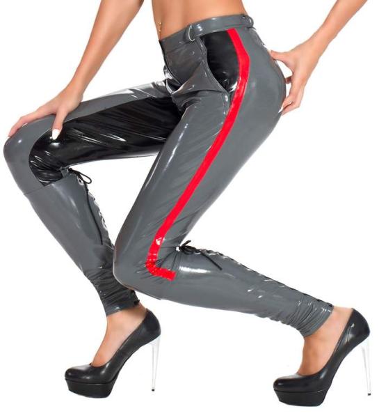 Diese hautenge lange Damen Hose der Marke Insistline im Military Look ist ein echter Blickfang. Schmal geschnitten ist diese zweifarbige Stiefel-Hose mit Gürtelschlaufen und Wadenschnürung einzigartig. Die Innenseite der Schenkel und die Hosentaschen sind in schwarz abgesetzt und seitlich befinden sich rote Zierstreifen. Dieses heiße Outfit ist in absolut hochwertiger Qualität gefertigt und eignet sich ideal für einen heißen Fetisch-Event. Ein Must Have für jeden Latex Fan.