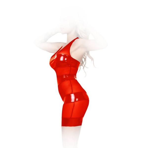 Dieses Aufsehen erregende sexy Minikleid der Marke Insistline ist eine ultimative Verführung. Ihre heißen Rundungen werden durch den transparenten Tüll umschmeichelt. Der atemberaubend tiefe Ausschnitt gewährt erotische Einblicke. Die breiten Datex Streifen verhüllen nur das nötigste. Sehr verführerisch präsentiert sich auch die komplett freie Rückenpartie. Durch seine Top-Qualität schmiegt sich das kurze Dress wie eine zweite Haut an Ihren Body, betont gekonnt Ihre scharfen Kurven und versprüht einen ganz besonderen Reiz an Erotik. Mit diesem atemberaubenden knappen Outfit sind Sie auf der nächsten Party mit Sicherheit DAS Highlight des Abends. Ein Must Have für jeden Latex Fan.