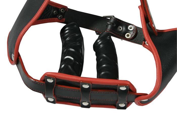 | Sie befinden sich Hier: Home » Fetisch » Für SIE » Leder » Ledapol - Echt Leder Doppel-Dildo / Penis Slip Harness schwarz-rot |