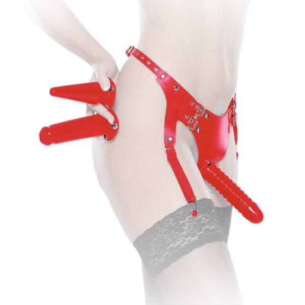| Sie befinden sich Hier: Home » Fetisch » Für SIE » Leder » Ledapol - Echt Leder Harness Straps-Slip mit 3 Dildos |
