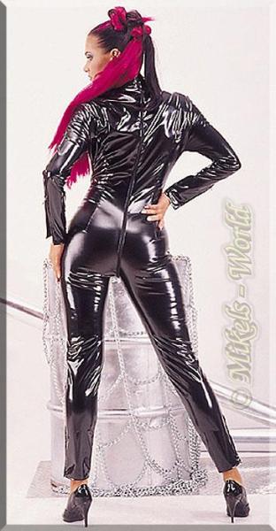 Dieser Lackoverall ist ein ganz besonderes Kleidungsstück für Fetisch-Freunde. Modische Details wie ein kleiner Lack-Stehkragen, ein Lacksaum als Ärmelabschluss sowie markante Ziernähte machen diesen Lackoverall im Erscheinungsbild einzigartig. Der Clou ist der Rückenreißverschluss, welcher durch den Schritt fast bis zum Bauchnabel reicht und als Zweiwege-Reißverschluss beidseitig geöffnet werden kann. Stretchqualität garantiert einen hautengen Sitz und macht jede Bewegung mit. Mit diesem raffinierten Overall sind Sie für einen glänzenden Auftritt bestens ausgestattet.