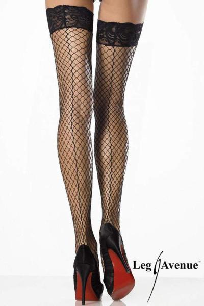 | Sie befinden sich Hier: Home » Dessous » Für SIE » Sexy Nylons » Halterlose Strümpfe » Leg Avenue - Halterlose Grobnetz Naht Strümpfe mit Spitze - Gr. S-L |
