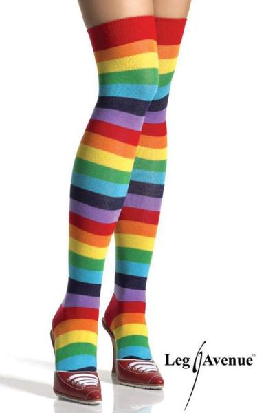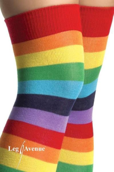 | Sie befinden sich Hier: Home » Dessous » Für SIE » Sexy Nylons » Halterlose Strümpfe » Leg Avenue - Halterlose Ringel-Strümpfe Regenbogen Farben - Gr. S-L |