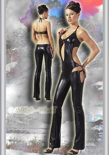 Mit diesem aufregenden Glanz-Overall versprühen Sie einen ganz besonderen Reiz an Erotik!! Der rassige schwarze Einteiler im Wetlook-Design hat einen modischen Neckholder zum Binden und ist somit nahezu rückenfrei. In der Front, der Seite und am Rücken sorgen tiefe Ausschnitte für erregende Einblicke... Unterhalb der Brust befindet sich eine Schnürung für die perfekte Passform. Raffiniert platzierte Stretchbänder, die durch hochwertige silberglänzende Metall-Ösen geführt werden, machen den sensationellen Overall zu einem unwiderstehlichen Eyecatcher. Die trendy gerade geschnittenen Beine des offenherzigen Einteilers zaubern Ihnen eine schlanke Silhouette. Die Top-Stretch-Qualität des weich fließenden Wohlfühl-Materials schmiegt sich wie eine zweite Haut an Ihren Körper und betonen optimal Ihre sexy Kurven. Damit sind Sie bei Ihrem nächsten Auftritt DER glänzende Hingucker schlechthin.