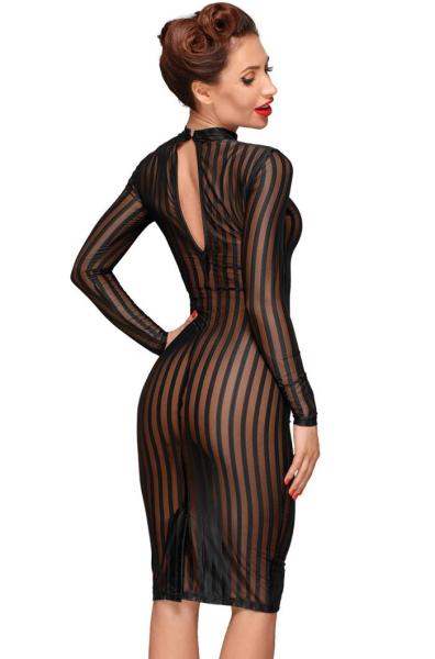 Noir Handmade - Spitzen-Kleid mit Wetlook-Einsatz ouvert schwarz