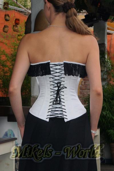 Original Vollbrust Rüschen Korsett weiß-schwarz